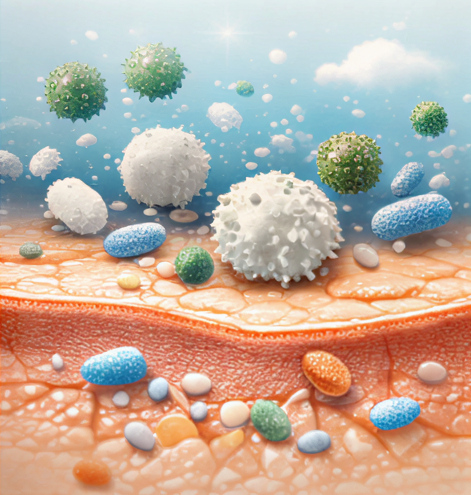 La piel no solo protege de forma pasiva, también participa activamente en la defensa del organismo. Sus células detectan agresiones externas y desencadenan respuestas inmunológicas para contener microorganismos, reparar tejidos dañados y mantener el equilibrio cutáneo.